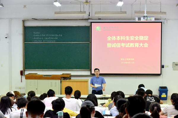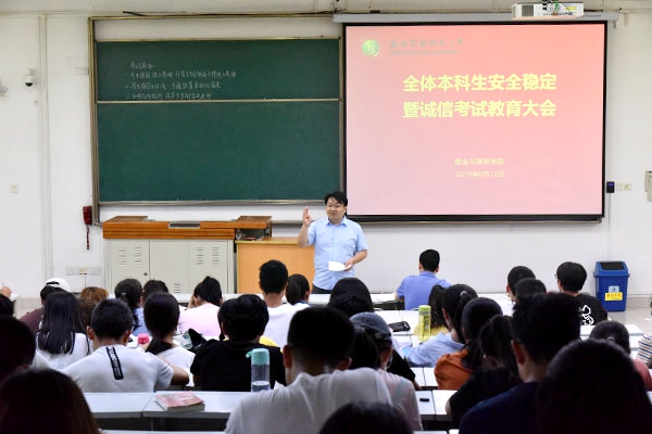6月13日,我院召开了本科生安全稳定暨诚信考试教育大会,学院副院长杨培志、党总支副书记阮鹏、全体辅导员及全体本科生参加会议。会议由辅导员郭燕楠主持。
